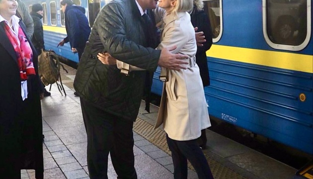 Ukrainian Foreign Minister Andrii Sybiha welcomed Kallas at the train station upon her arrival in the Ukrainian capital.